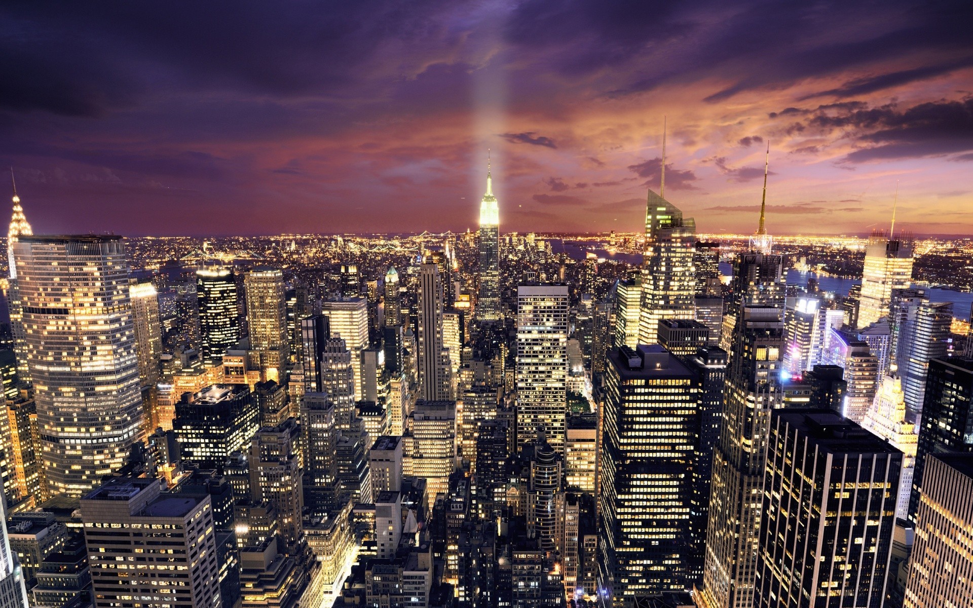 Glitzernde Wolkenkratzer spiegeln sich im Wasser wider