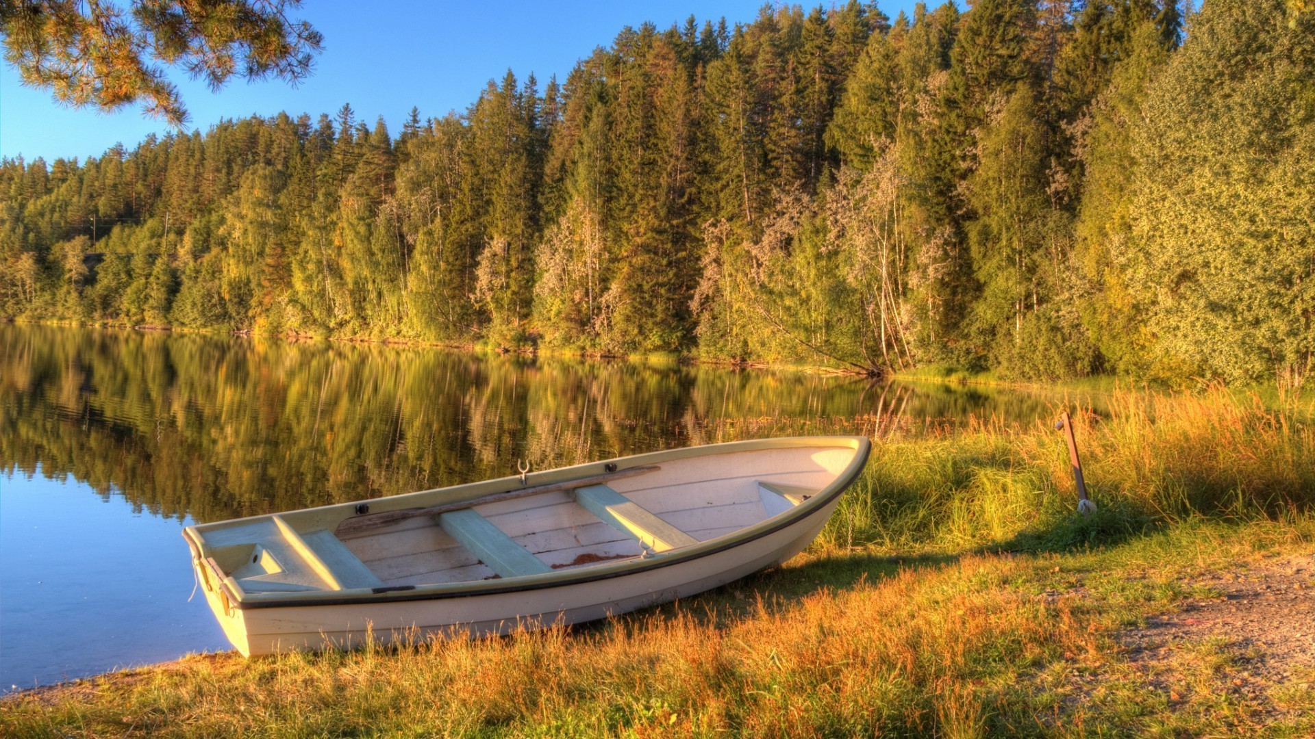Boot im Meer bei Sonnenuntergang Hintergrund