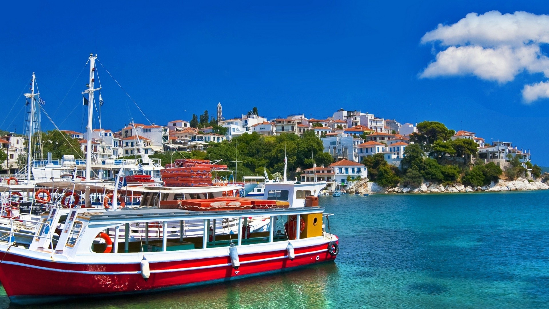 Hafen mit Booten und Häusern in Griechenland