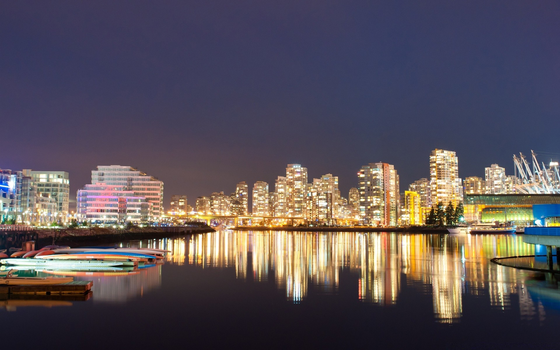 Abendliche Megopolis und Reflexionen im Wasser