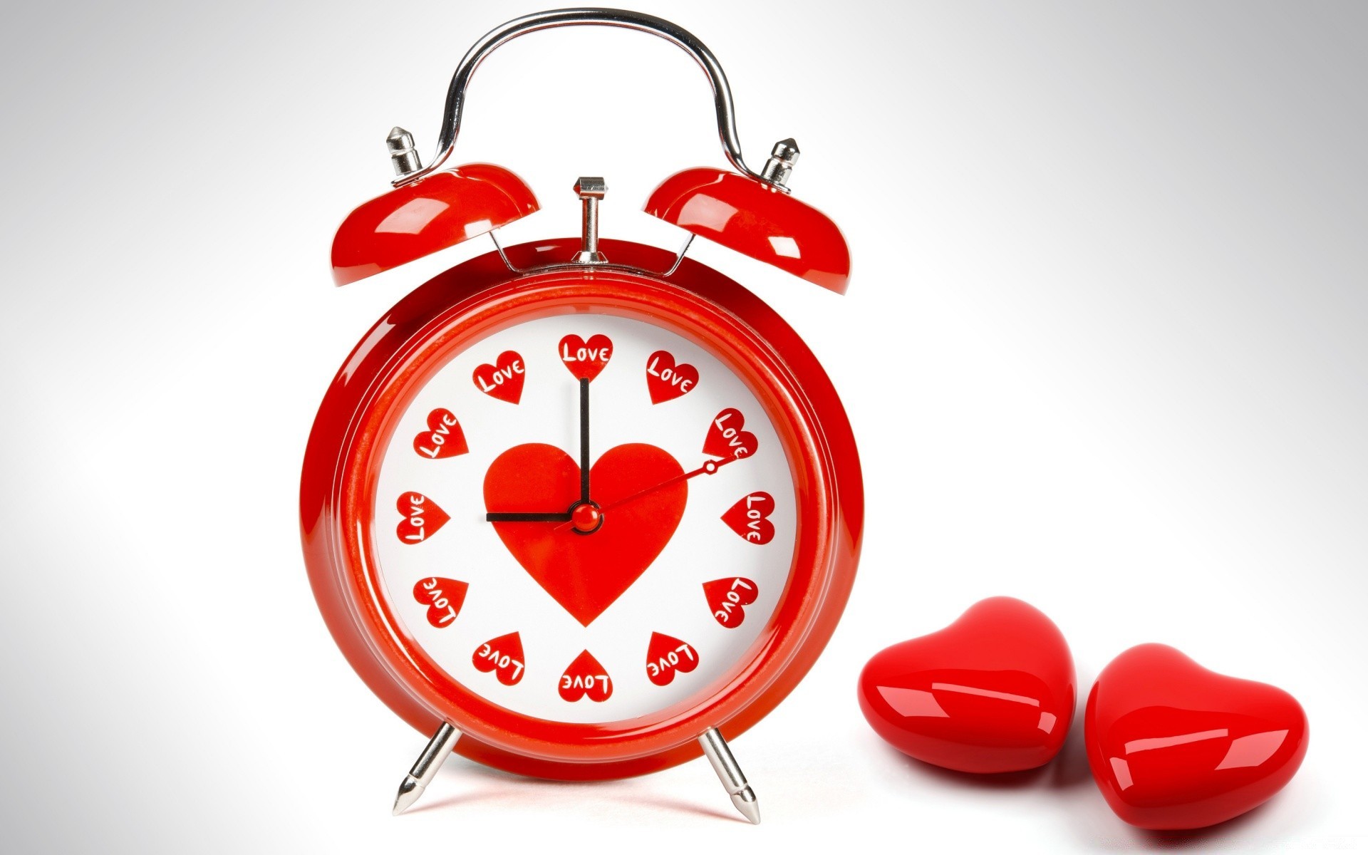 Roter Wecker mit Herzen auf dem Zifferblatt