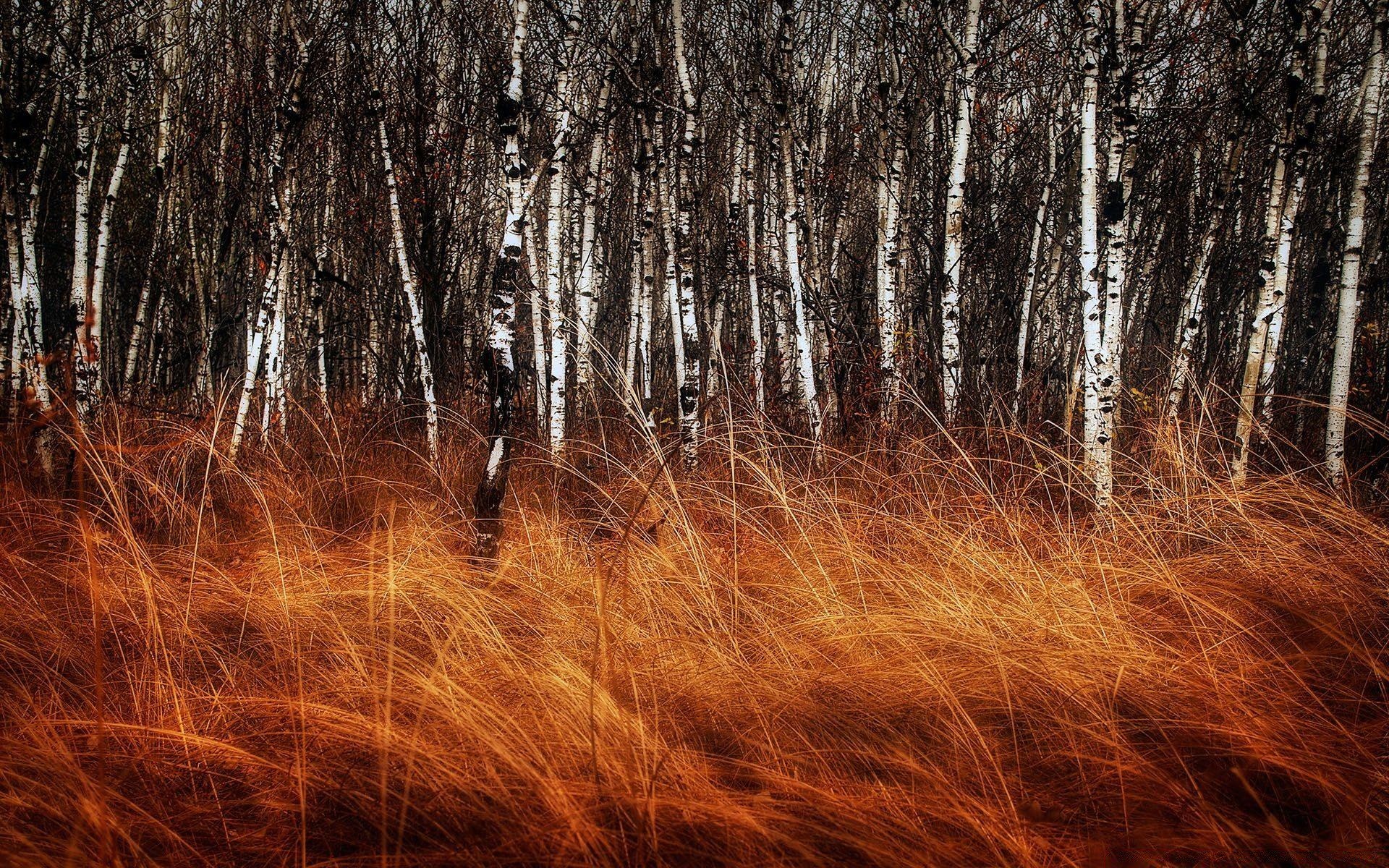 Rotes hohes Gras auf Birkenhintergrund
