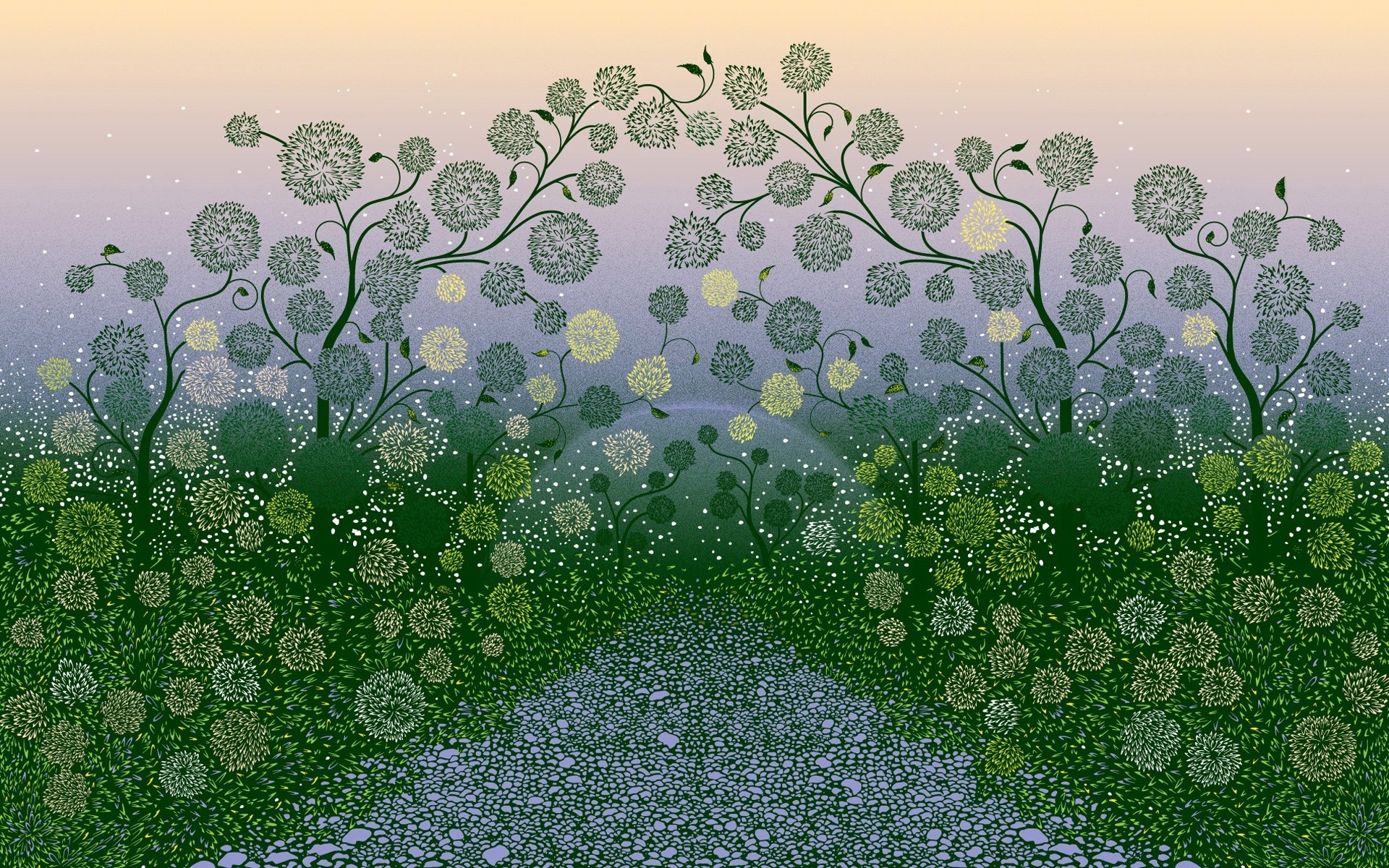 Abstrakte Vegetation mit weißen und grünen Knospen