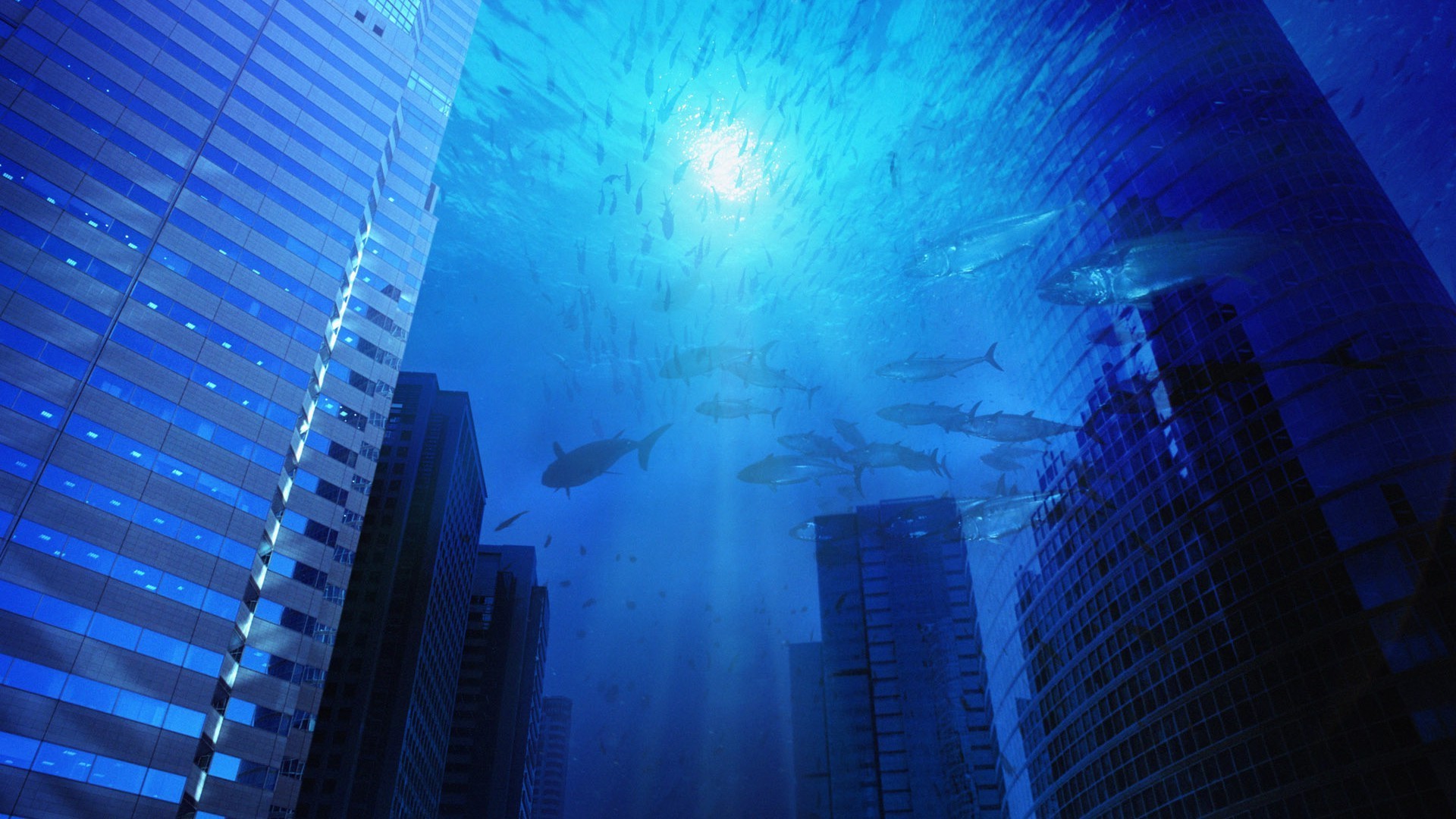 Konstruierte Architektur in einer Unterwasserstadt