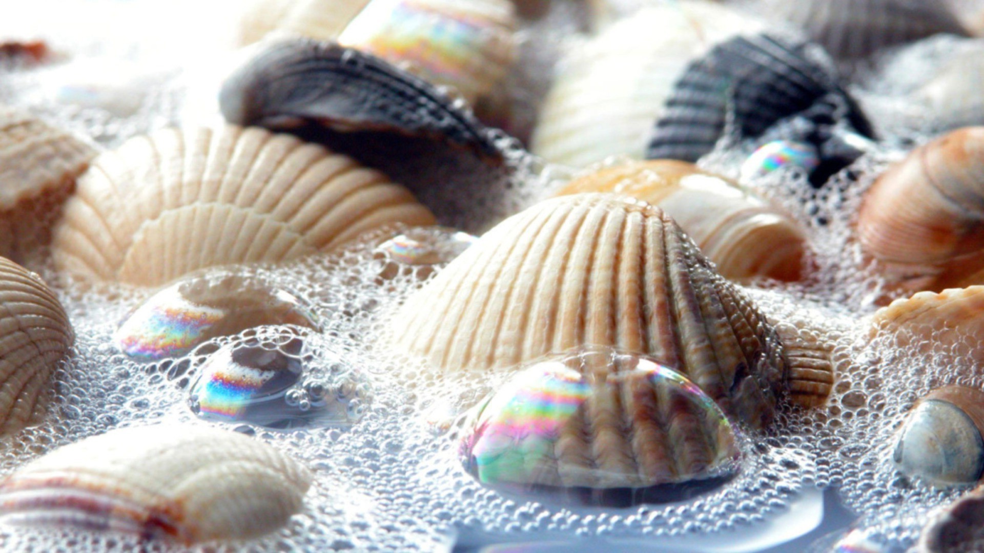 Mädchen schwimmt unter Wasser in einem Raum mit Fenstern