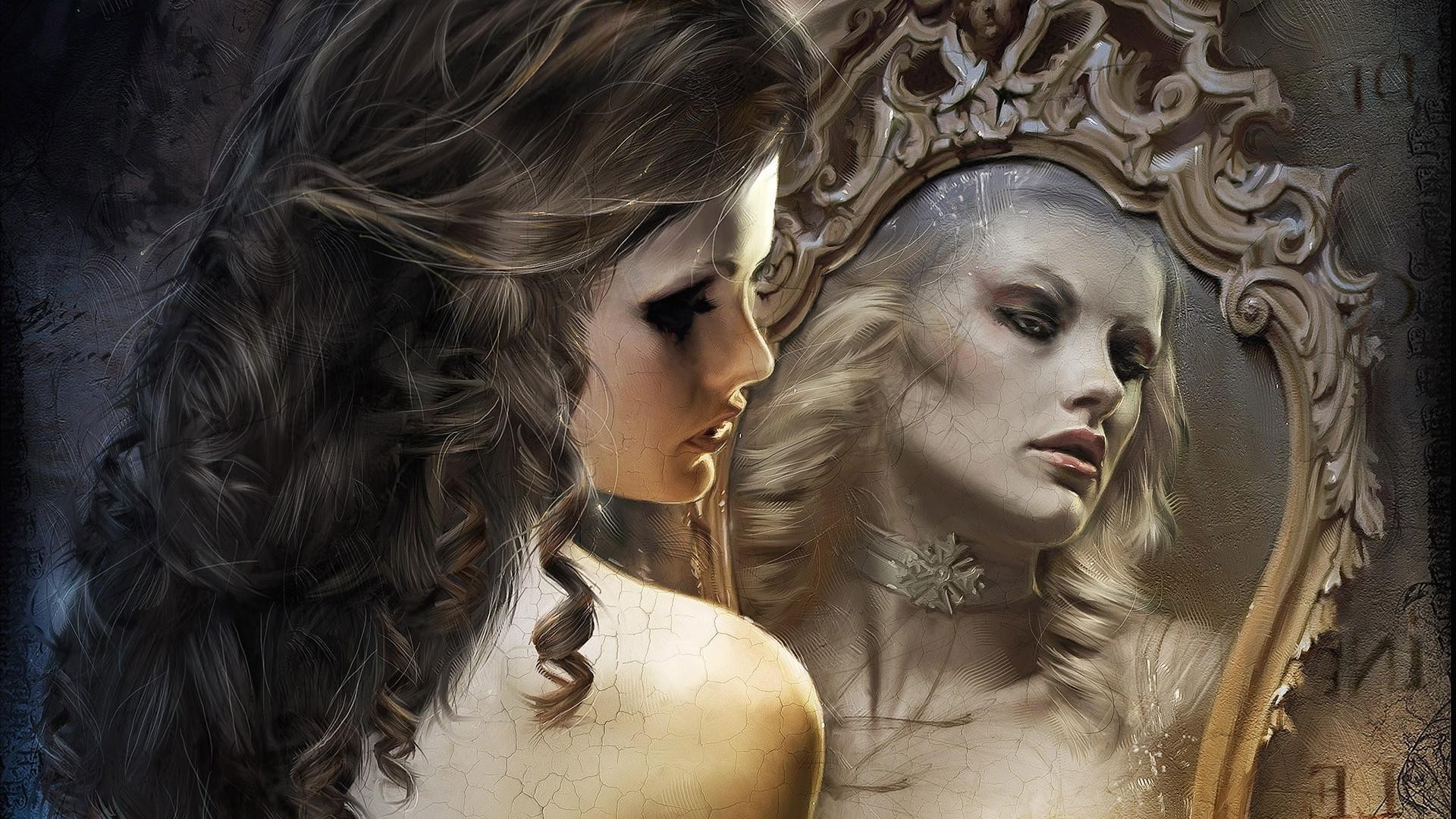 Ein offener Blick in die jenseitige Welt der Toten in einem schicken Spiegel