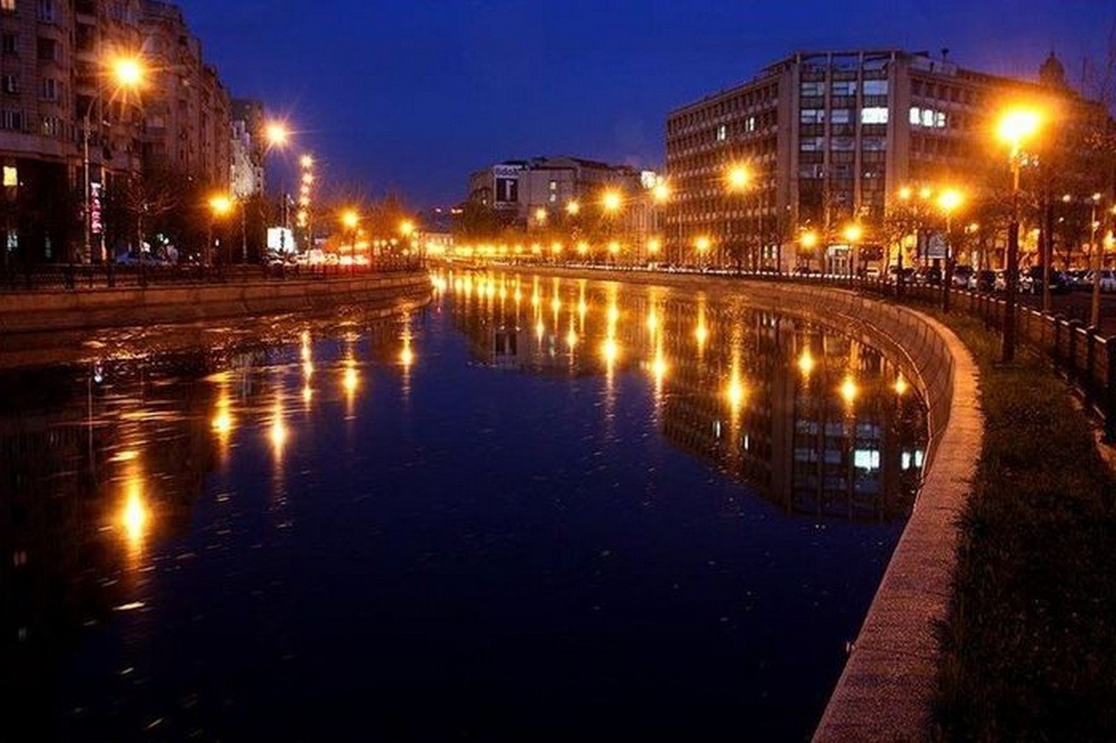 Reflexion der Abendlichter im Stadtbild