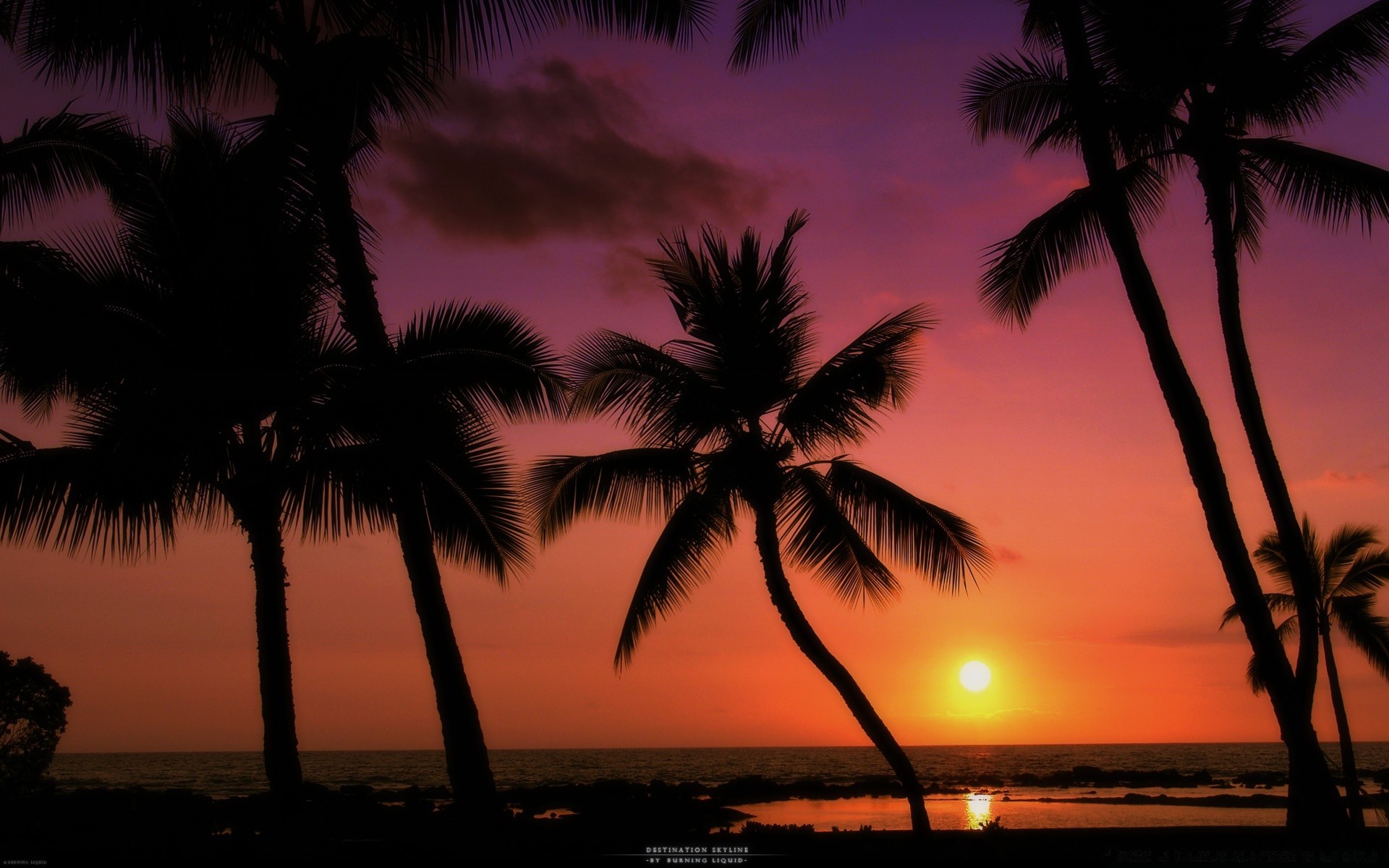 Der Strand. Palme. Sonnenuntergang. Urlaub
