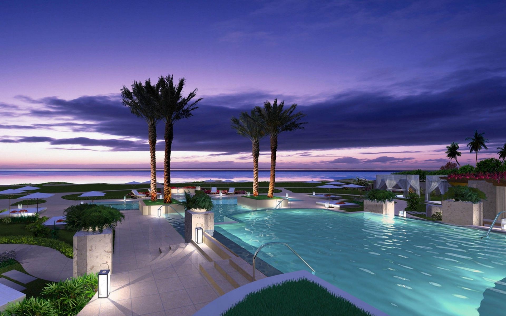 Landschaft Pool Natur Wasser Meer Liegestühle