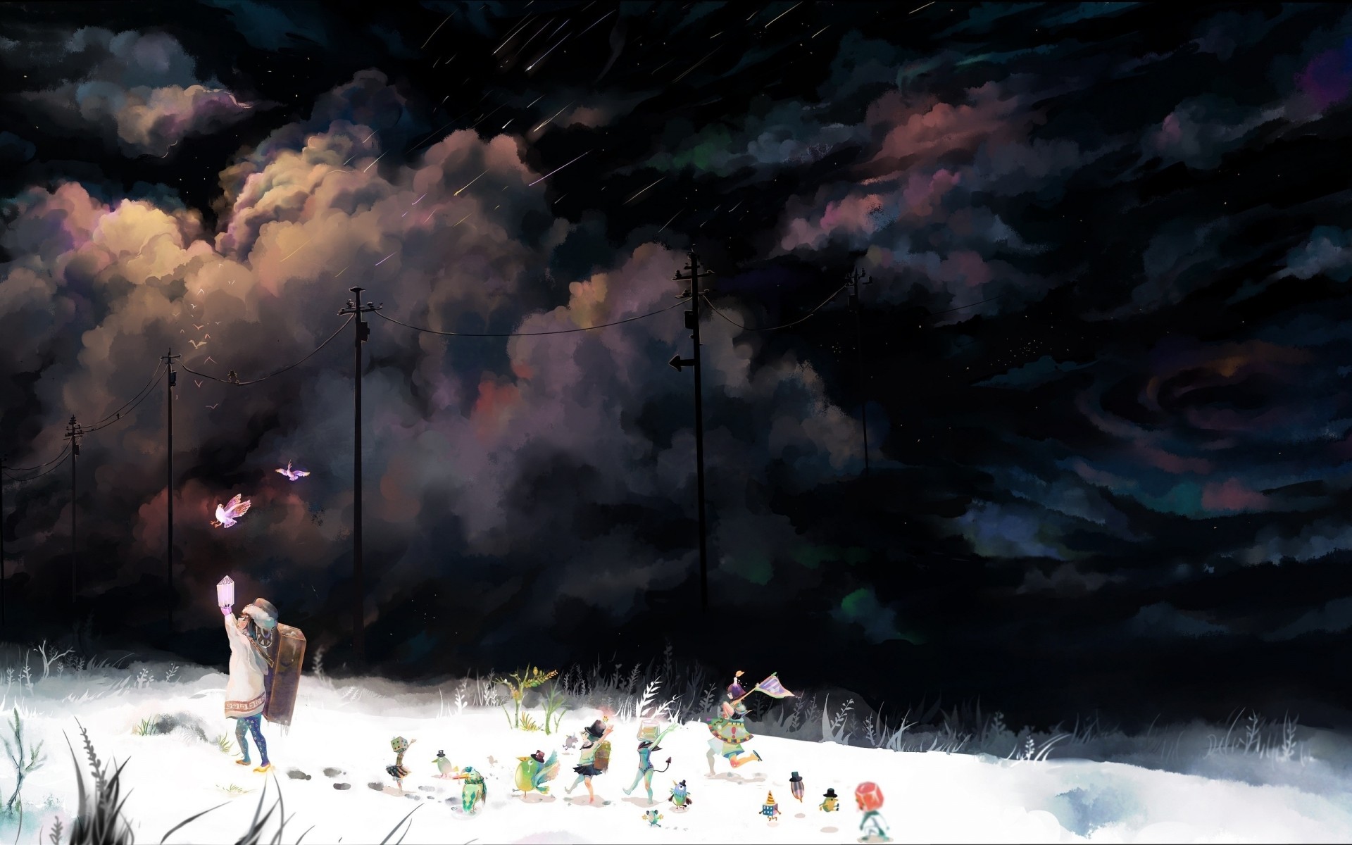 Nacht Straße Licht Wolken