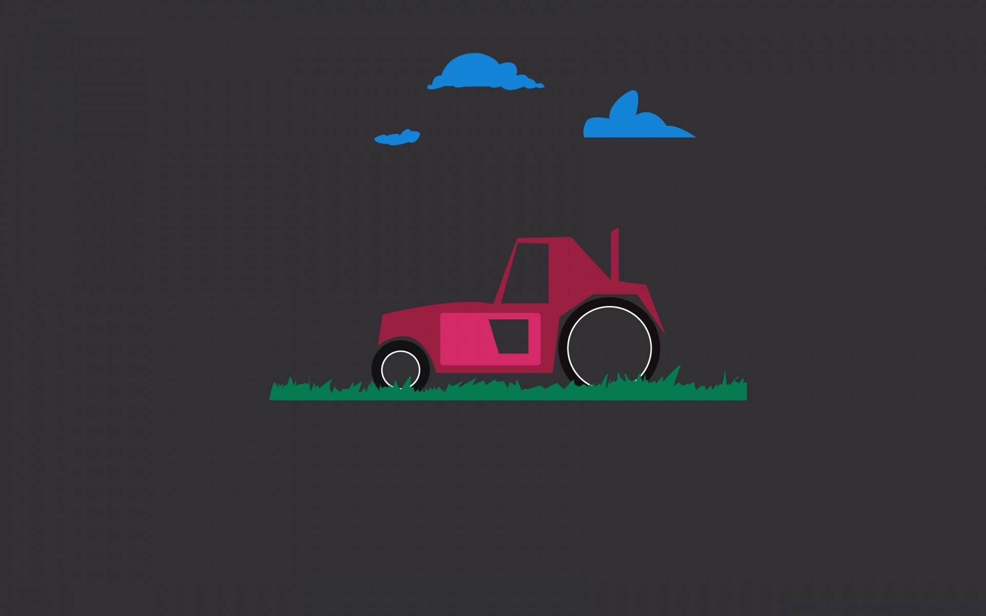 Traktor auf dem Rasen unter den Wolken