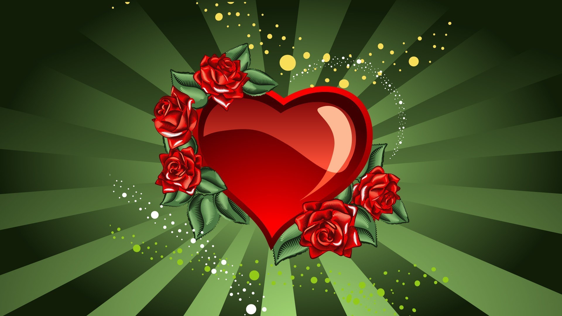 Herz-Bildschirmschoner mit Rosen auf grünem Hintergrund