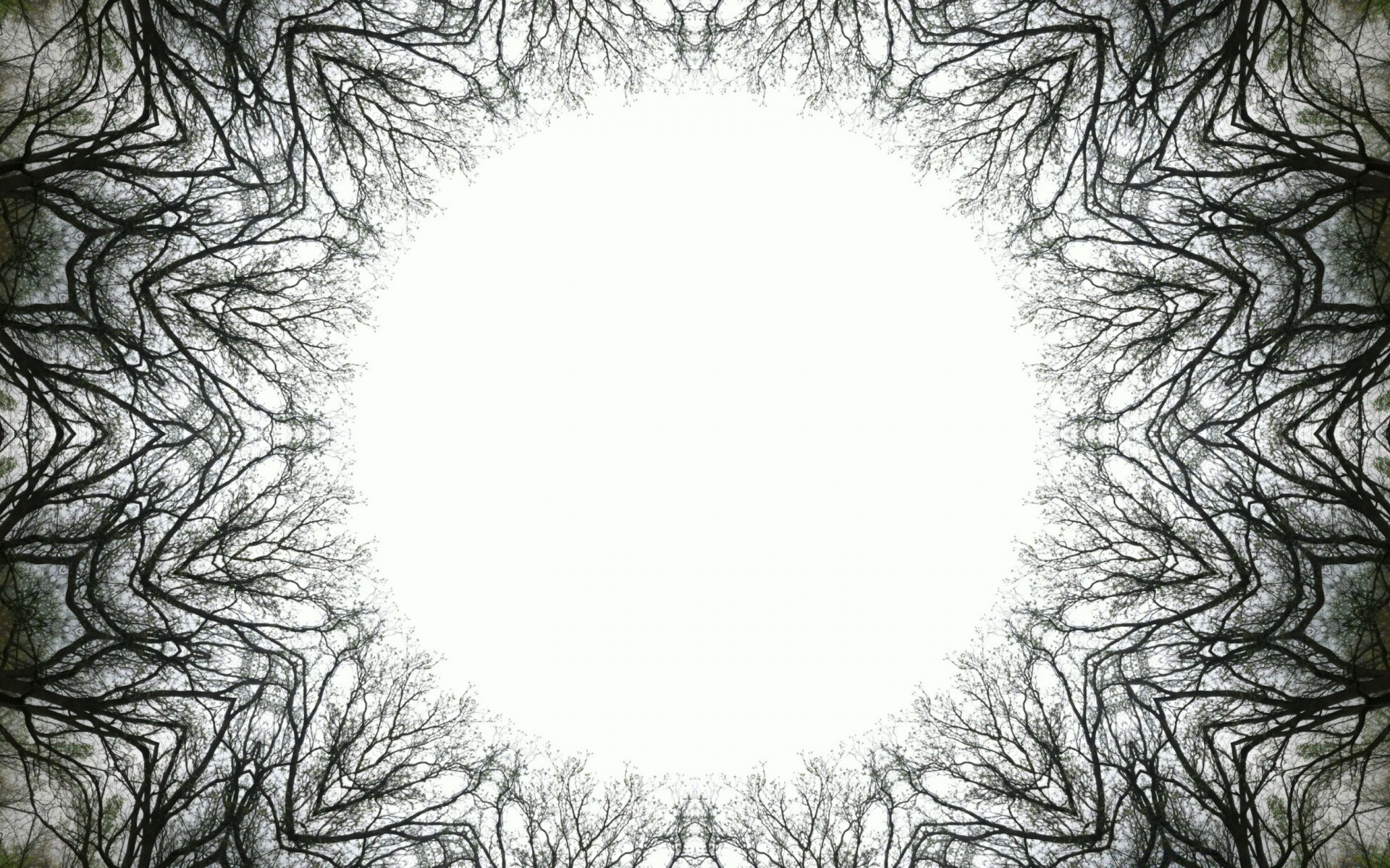 Ungewöhnliche Abbildung von Baumkronen mit einem runden weißen Lumen