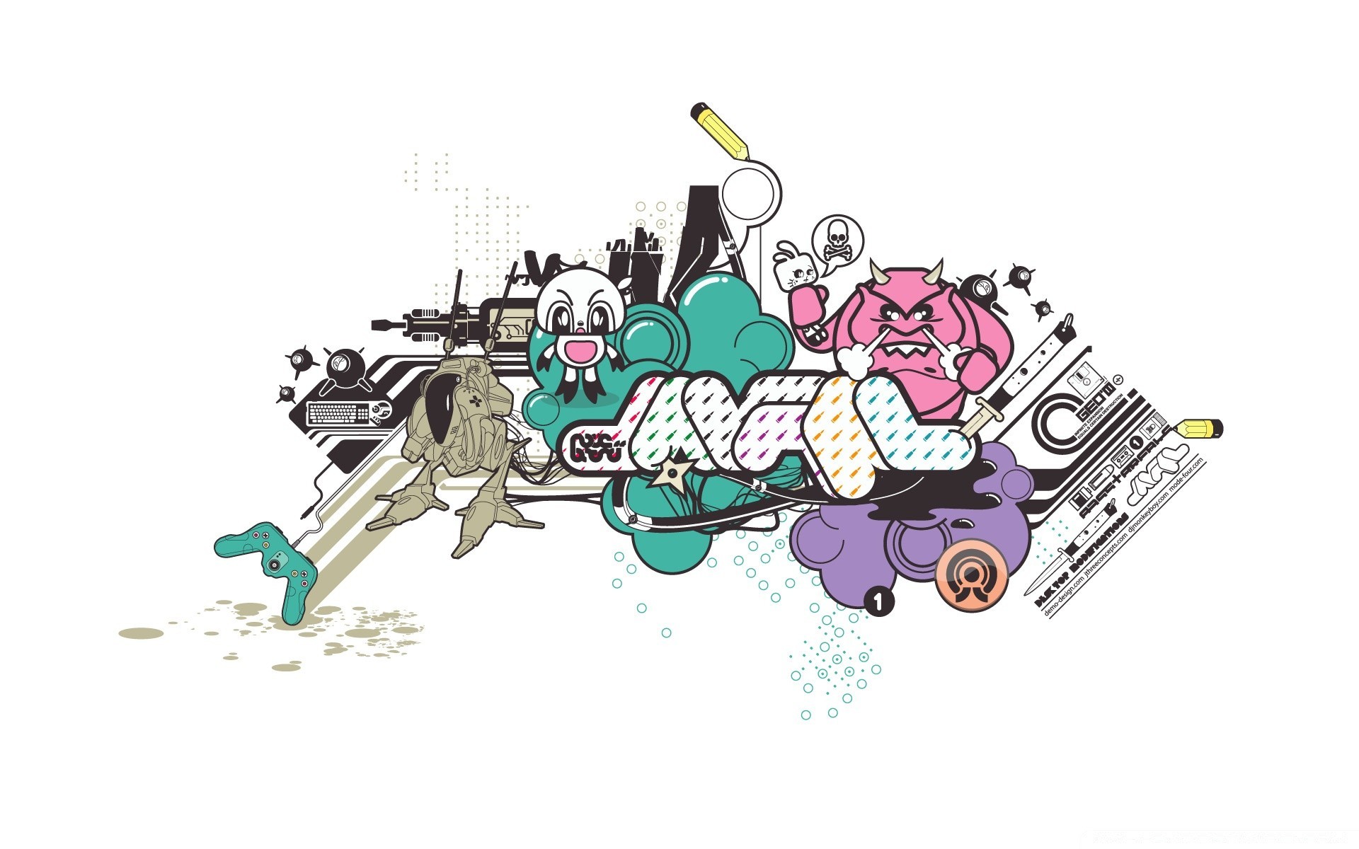 Grafiken mit Cartoon- und Computerfiguren