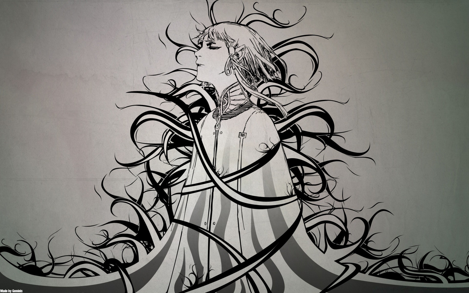 Ein Mädchen, das mit Fesseln gefesselt ist. Schwarz-Weiß-Bild