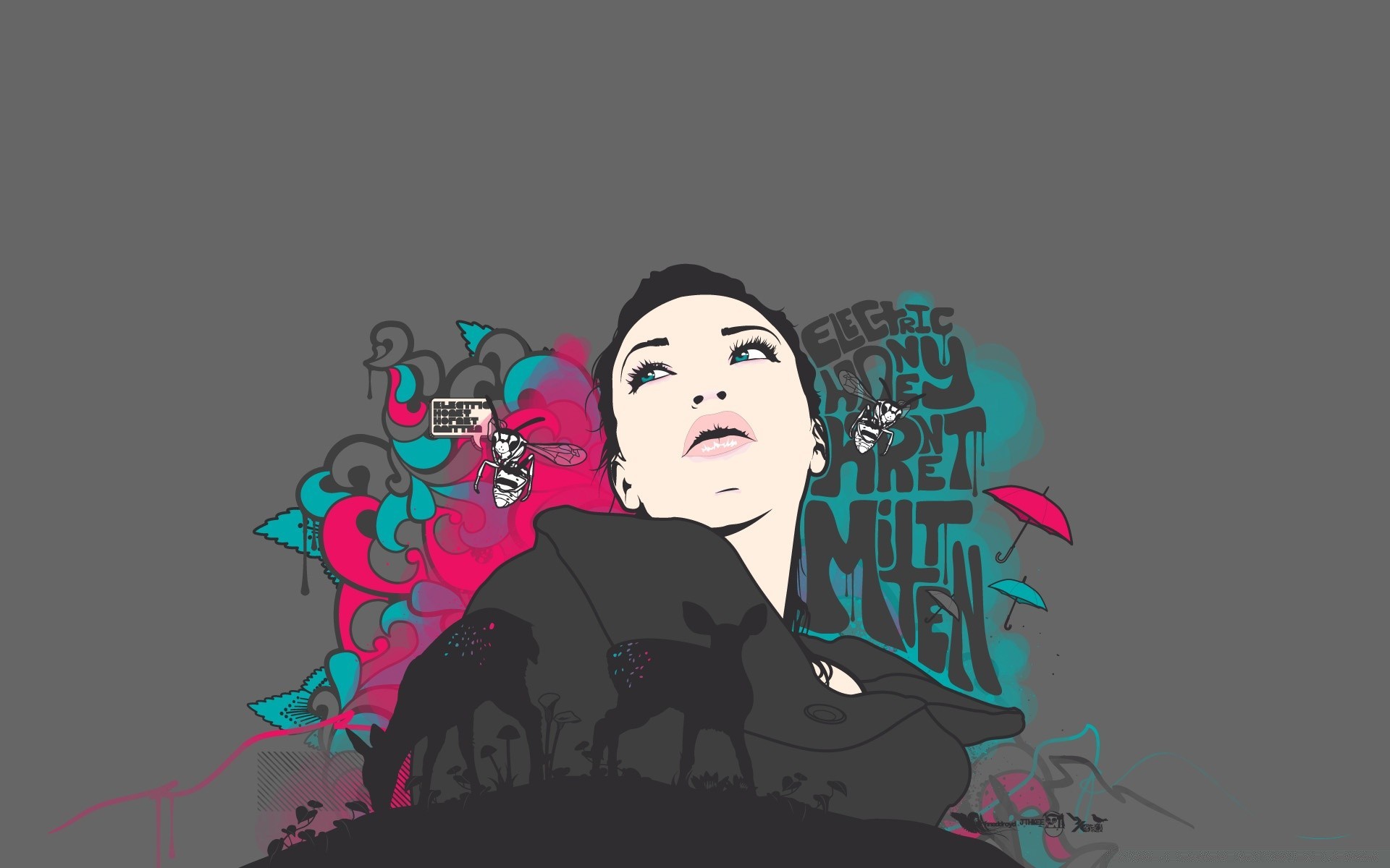 Vektorgrafik des Mädchens auf grauem Hintergrund mit Abstraktionen