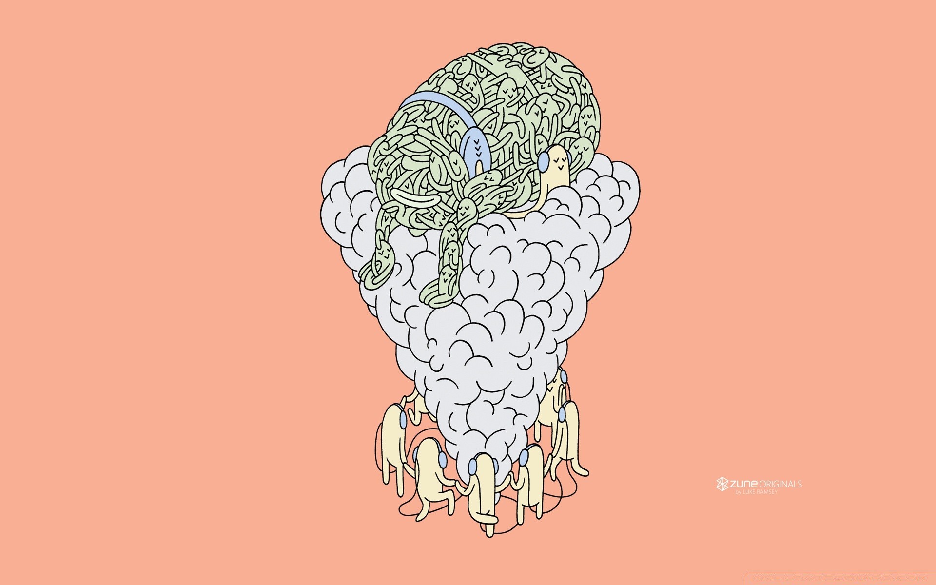 Grafik ein Kegel aus einer Wolke und ein Gehirn mit Beinen