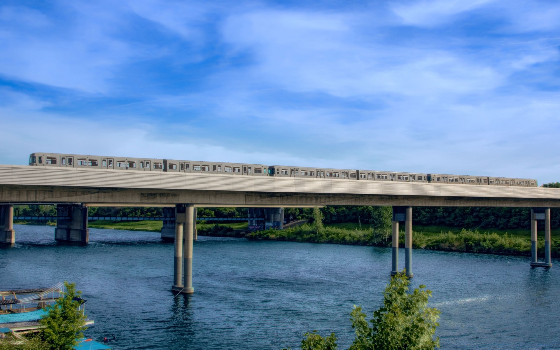 Fließen blauer Himmel über der Brücke