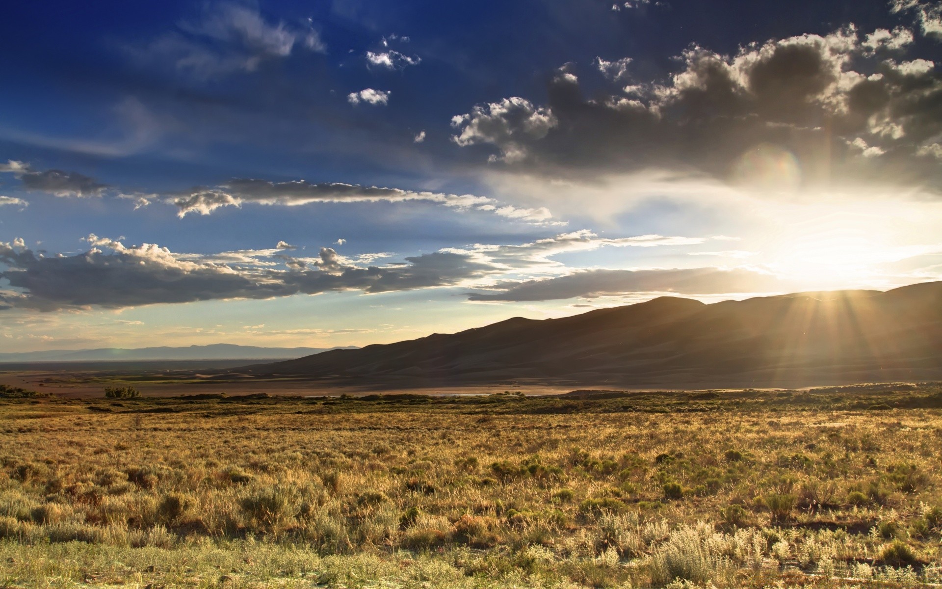 Sonnenstrahlen, die sich hinter den bergen durchbrechenSonnenstrahlen, die sich hinter den Bergen durchbrechen