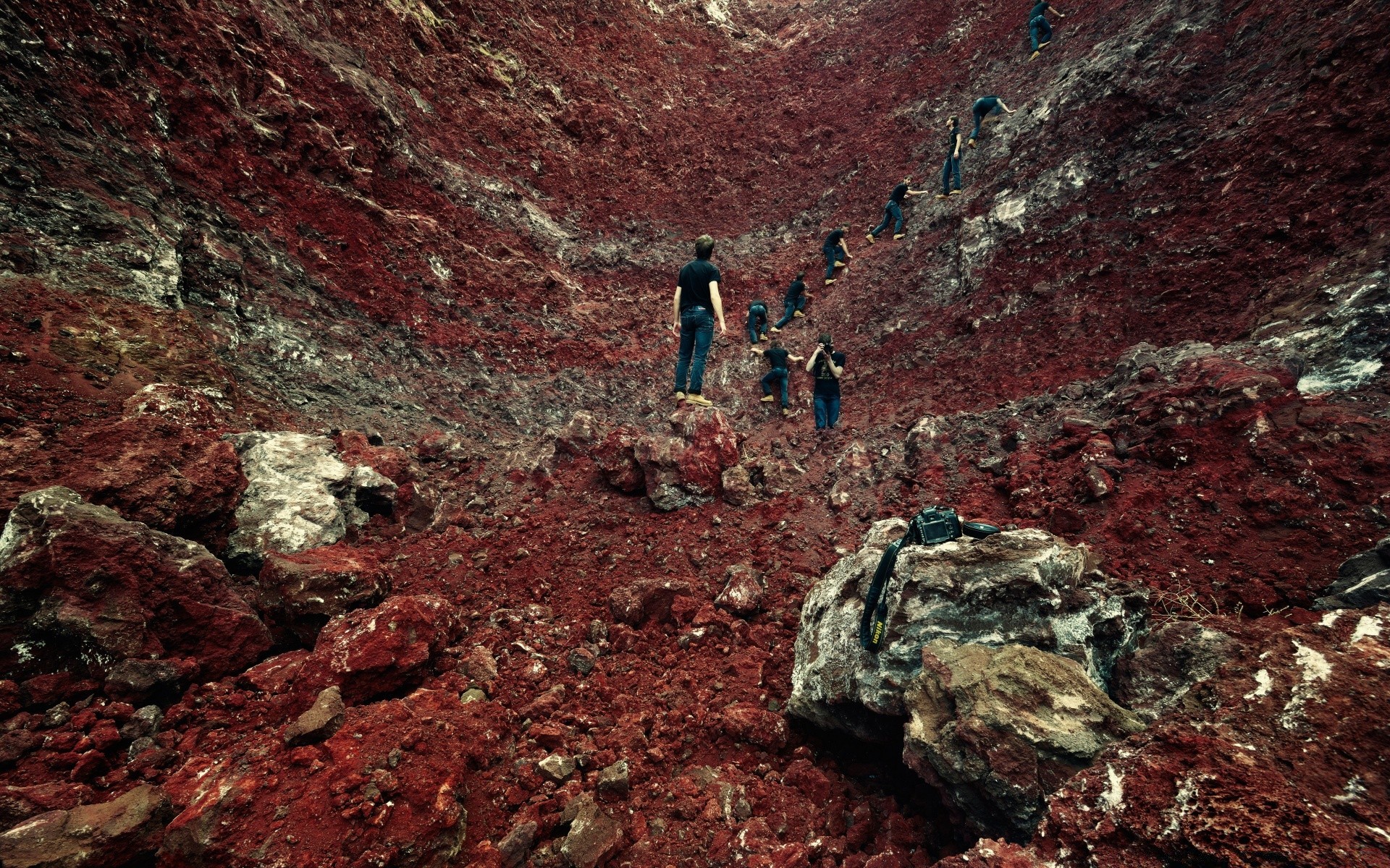 Sie kletterten auf den roten Berg, aber sie vergaßen die Kamera