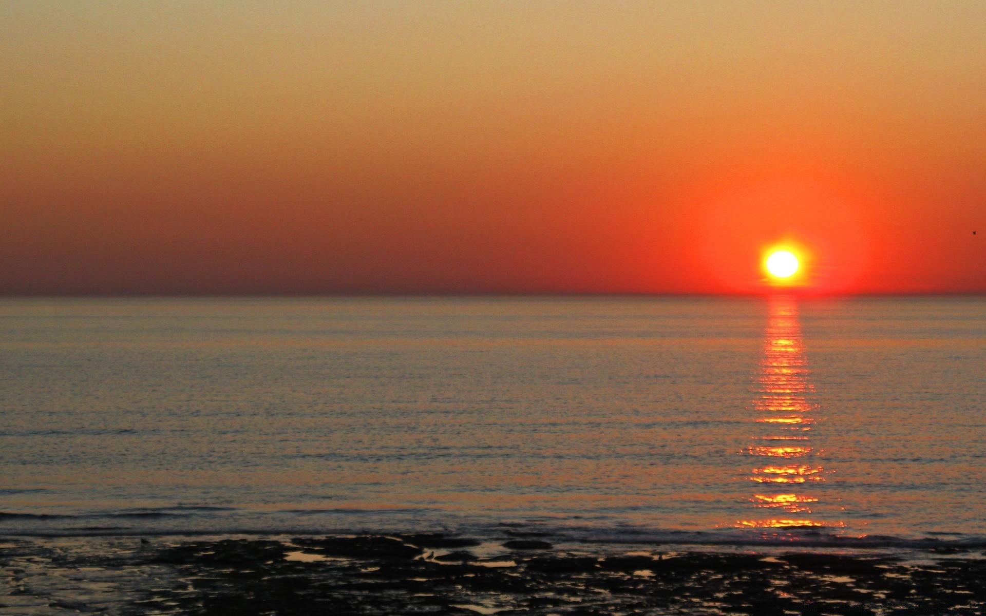Die orangefarbene sonne setzt sich hinter den horizontDie orangefarbene Sonne setzt sich hinter den Horizont