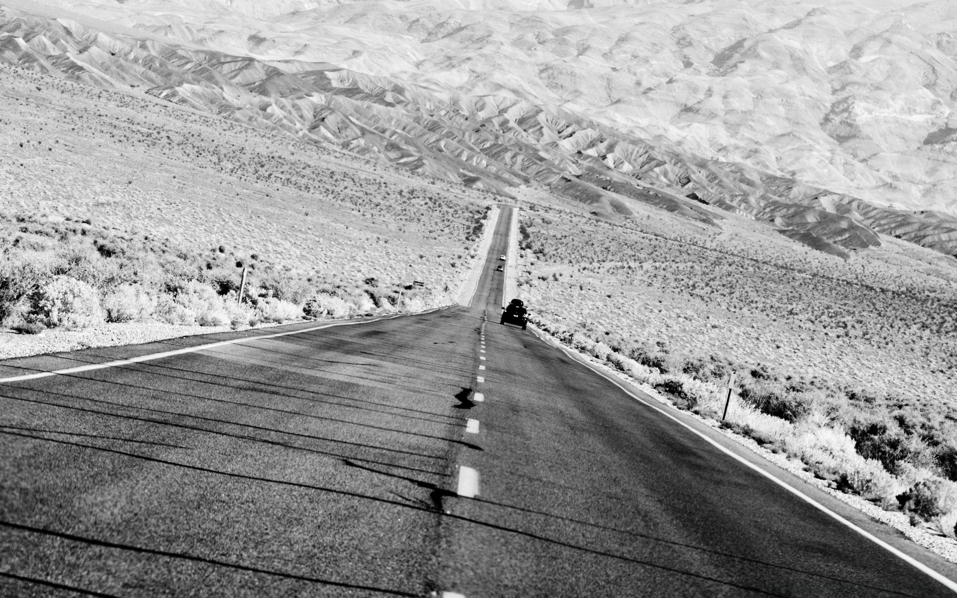 Straße in einem wüstengebiet vor dem hintergrund der bergeStraße in einem Wüstengebiet vor dem Hintergrund der Berge
