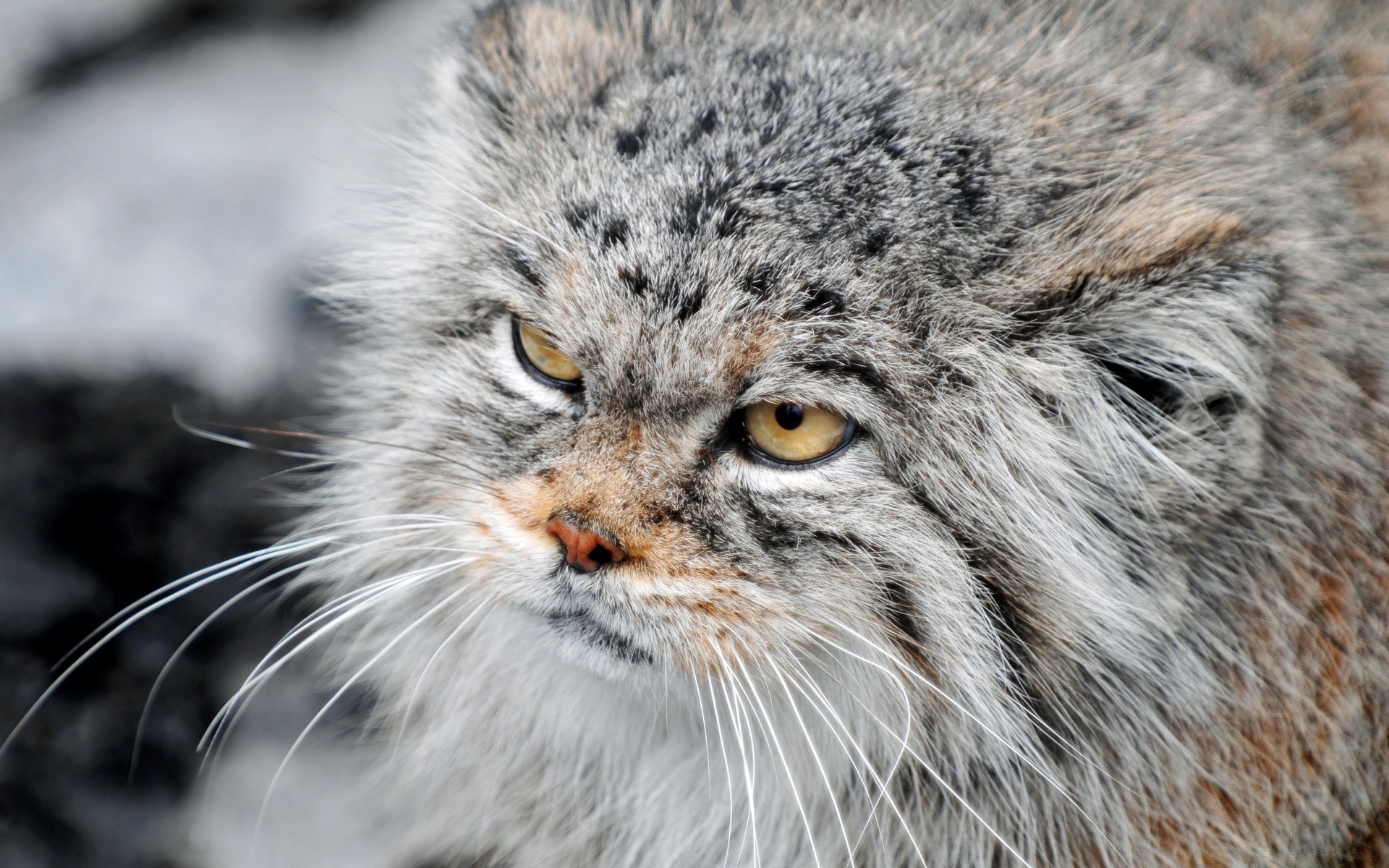 Rothaarige pelzige Katze mit üppigem Schnurrbart schaut irgendwo hin