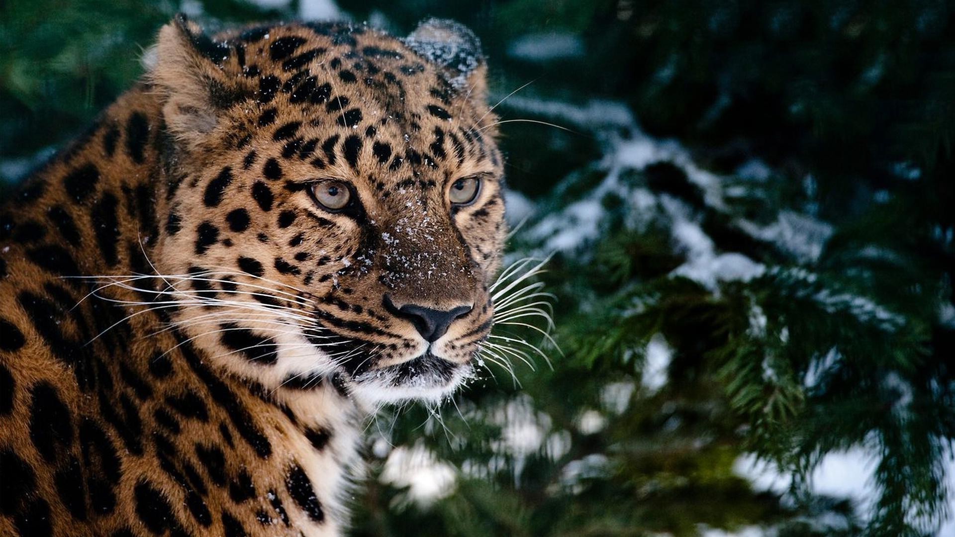 Der Leopard schaut mysteriös unter den Weihnachtsbaum