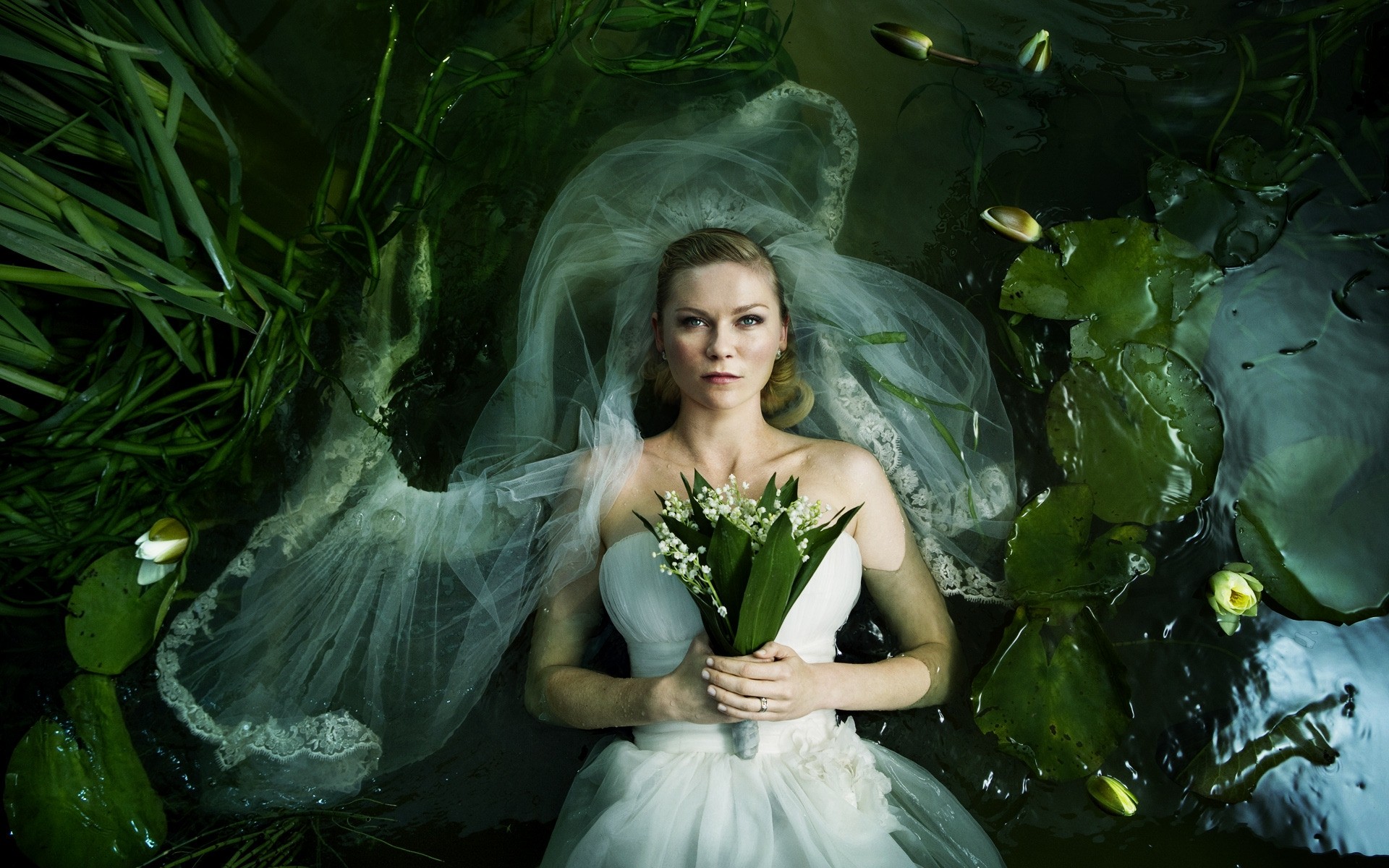 Braut mit einem Blumenstrauß auf grünem Hintergrund