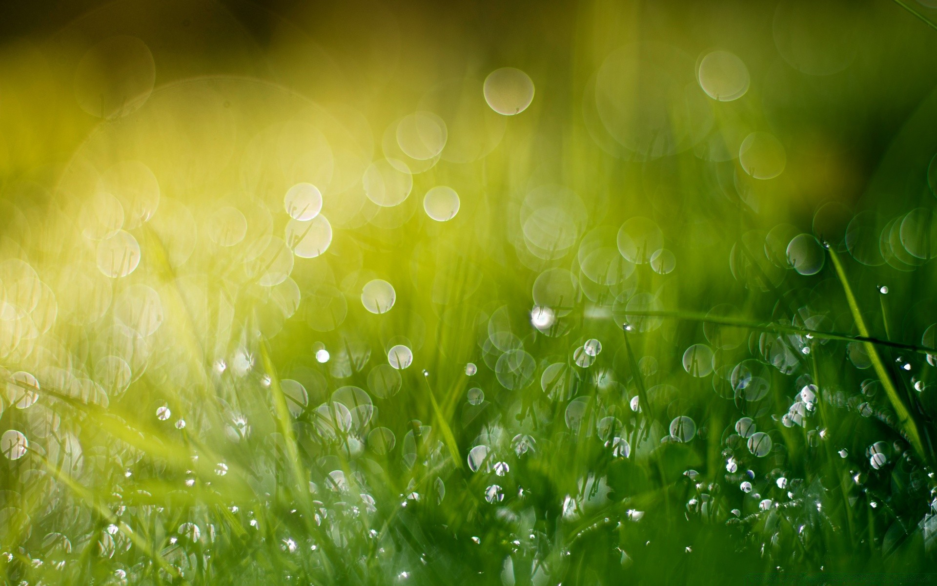 Tau auf hellem, grünem Gras