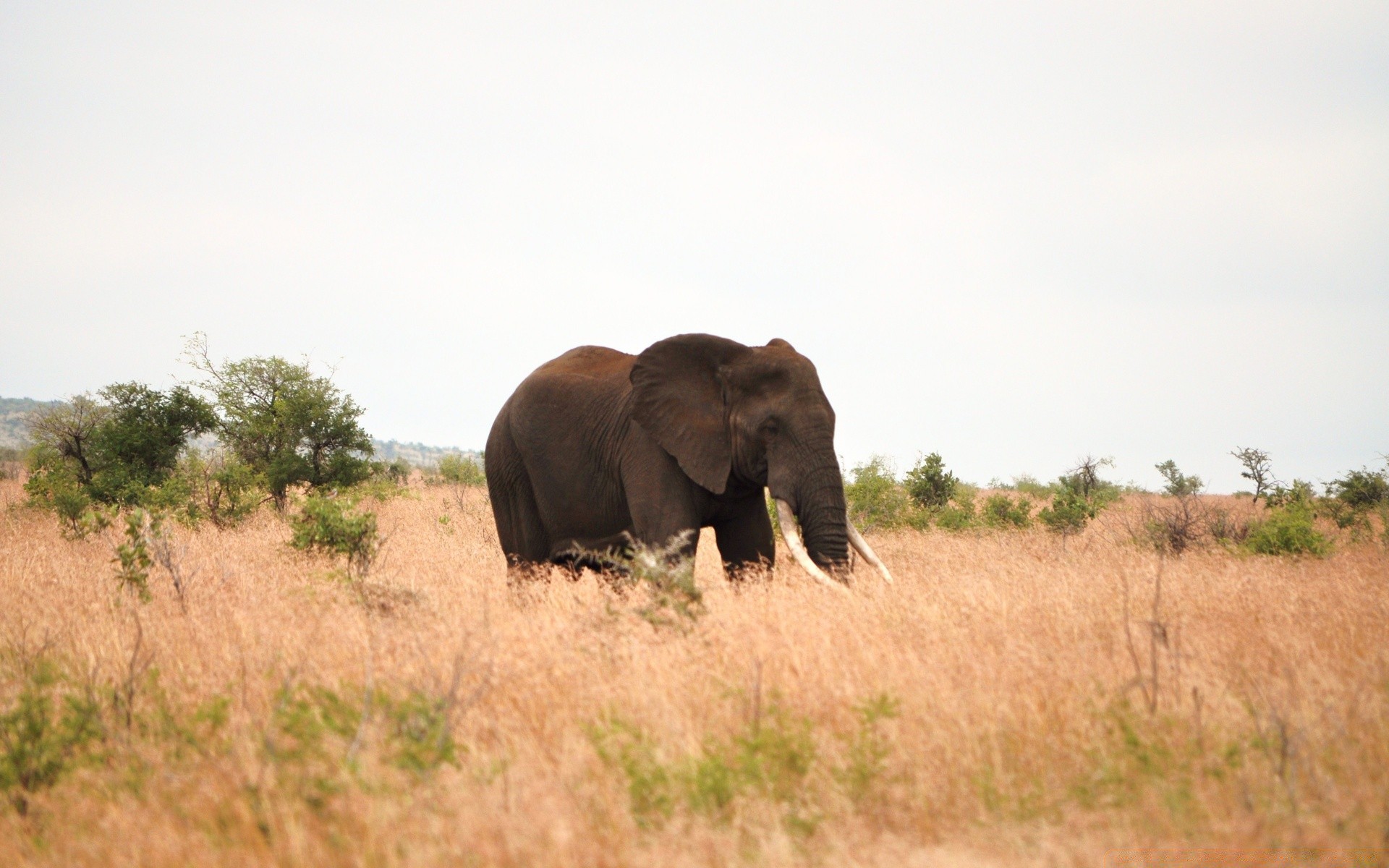 Elefant in der Savanne wird Gras fressen