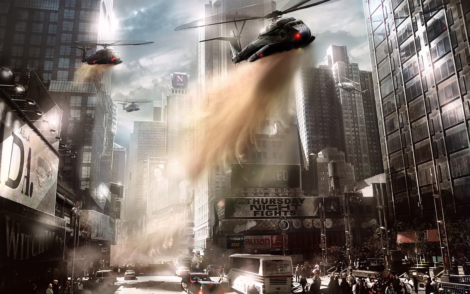Hubschrauber löschen Brand in der Stadt