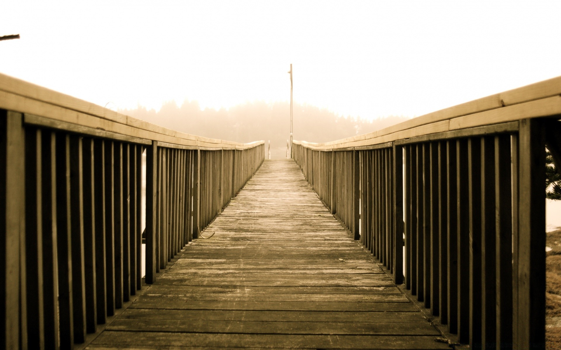 Vintage-Landschaft der Brücke mit Nebel