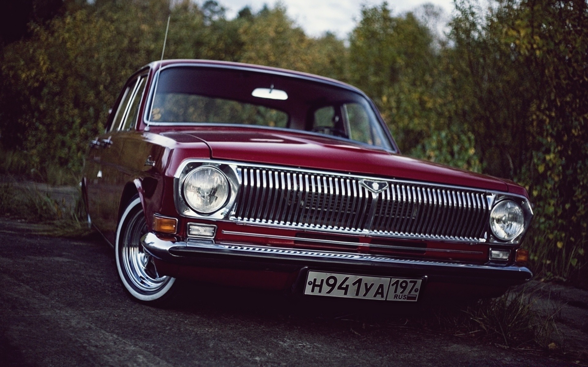 Oldtimer und Abendwald
