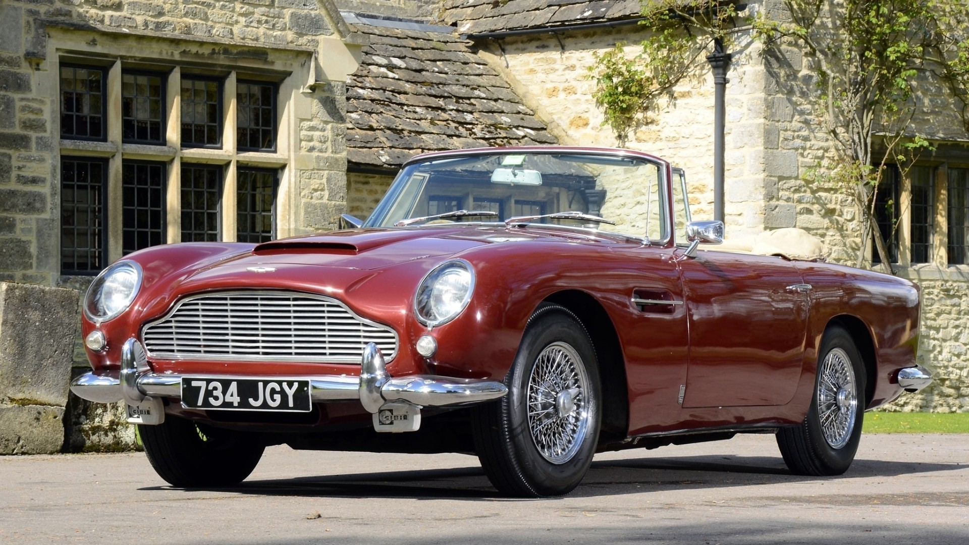 Ein grüner Pkw aus dem frühen 20. Jahrhundert mit klappbarem Oberteil und zwei Insassen