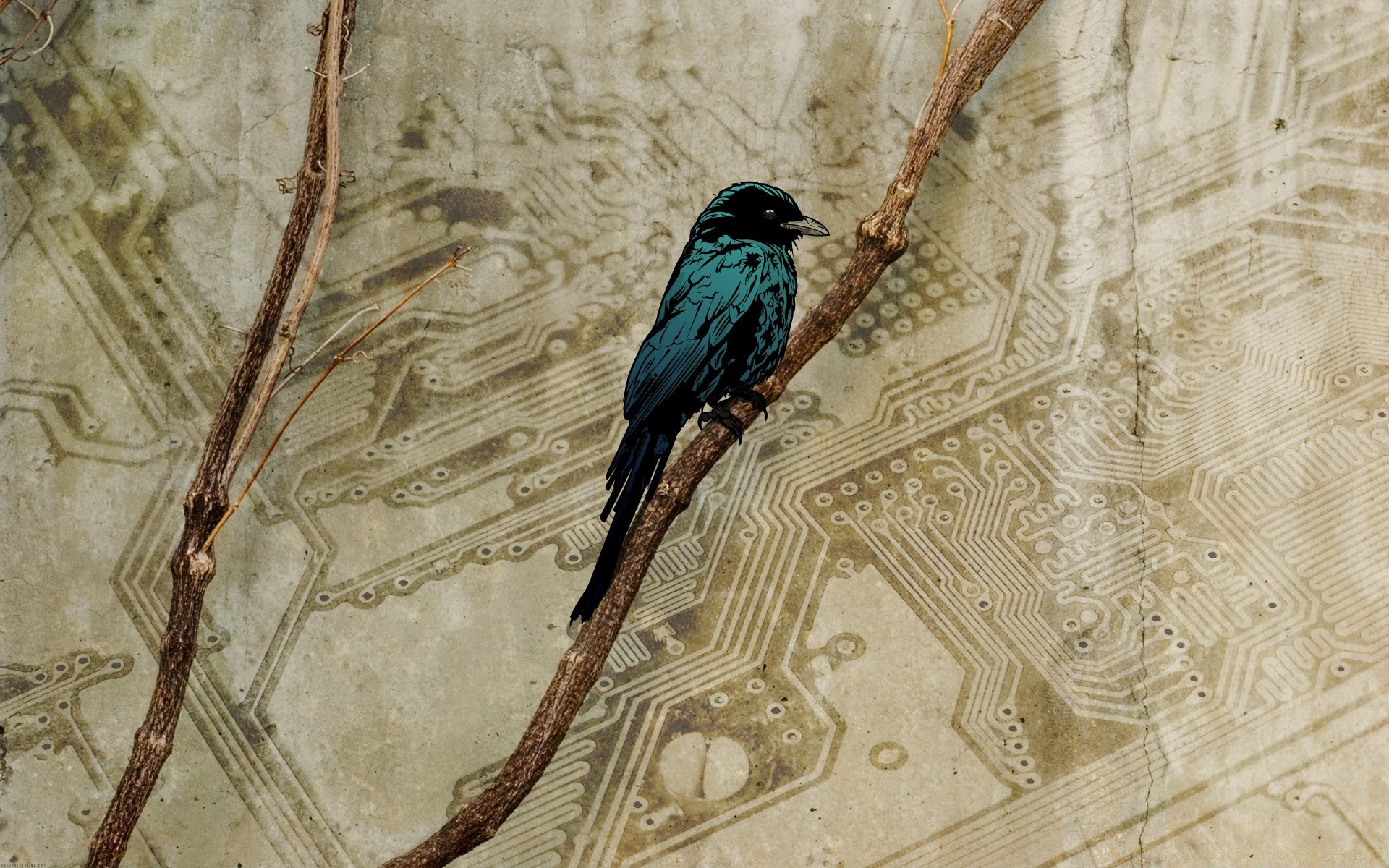 Vintage vogel auf einem ast auf einem chip-hintergrundVintage Vogel auf einem Ast auf einem Chip-Hintergrund