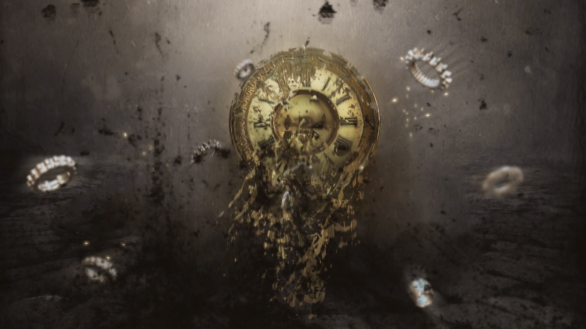 Vintage-Uhr auf grauem Hintergrund mit Zahnrädern