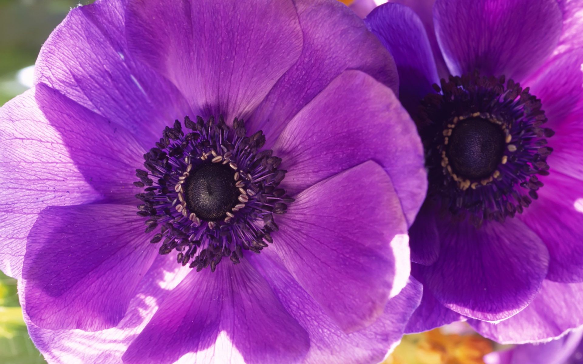 Mohnblume Nahaufnahme lila zwei Blüten Blütenblätter
