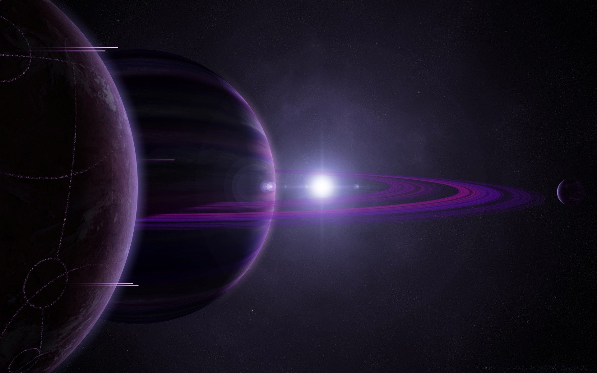 Die violette Farbe eines Planeten in einer dunklen Galaxie