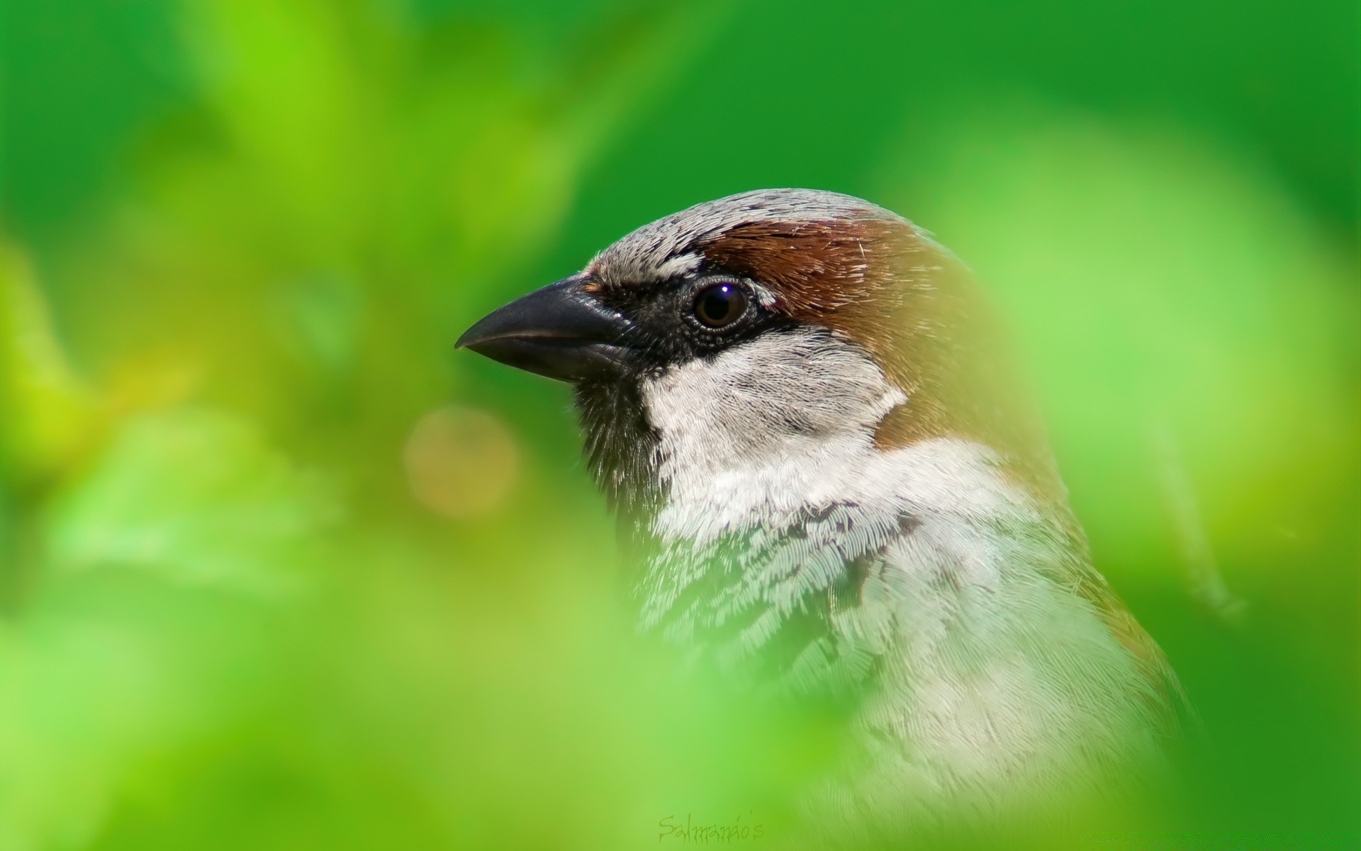 Der Kopf eines Vogels, der aus den Büschen herausragt