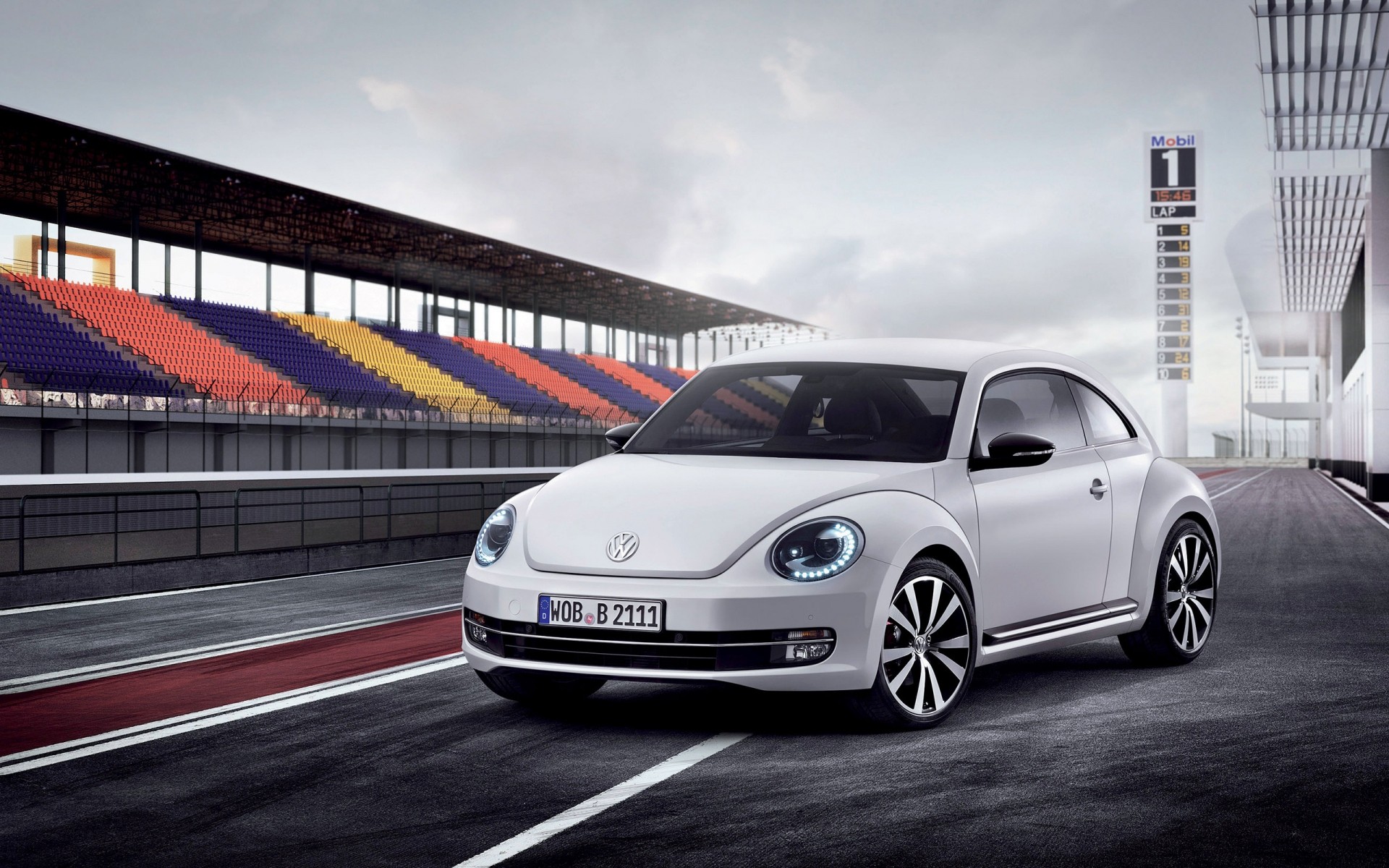 Ein Spielzeugvolkswagen fährt die Straße hinunter