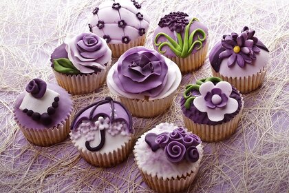 Süße lila Kuchen neun