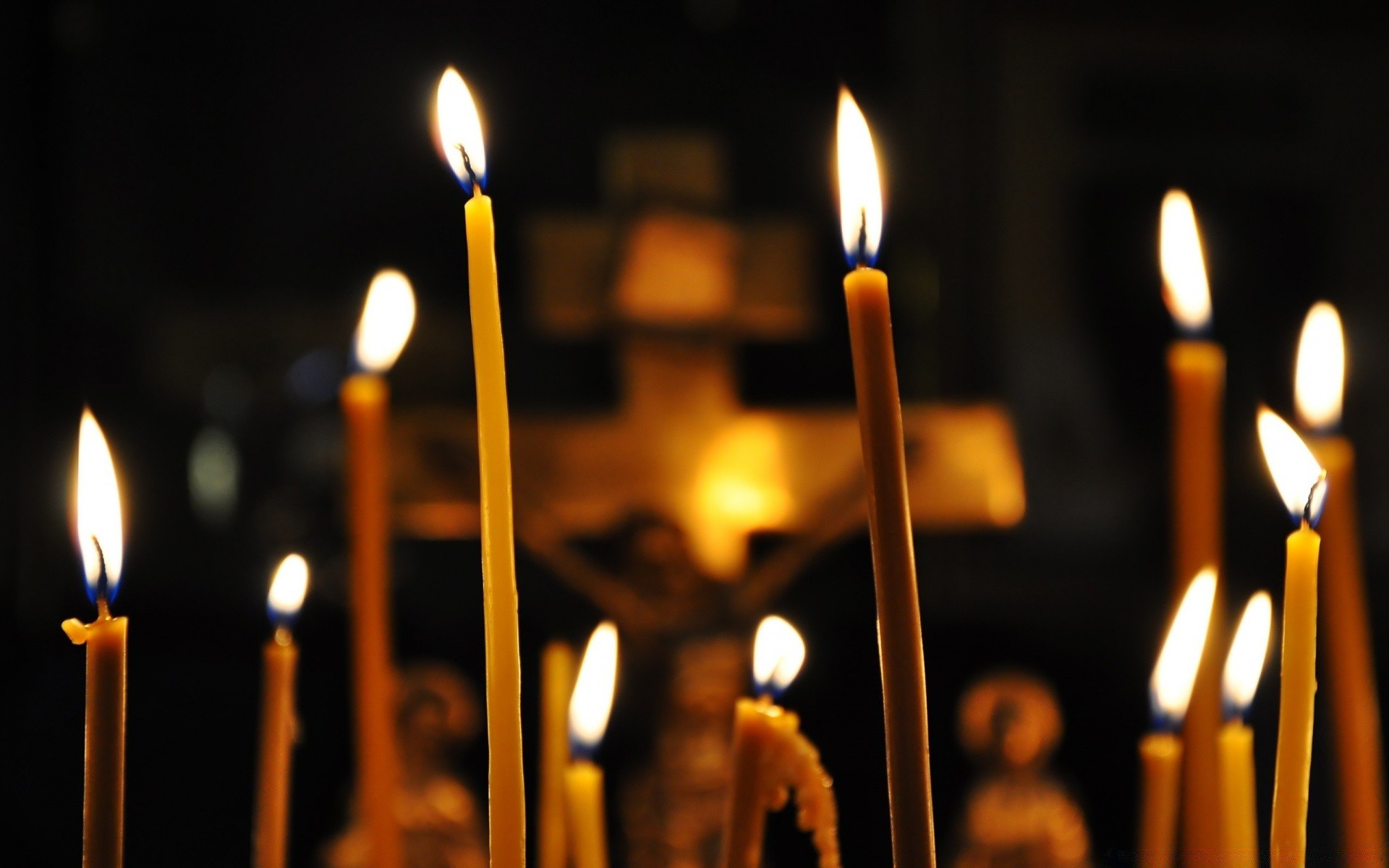 Flammen von bunten Kerzen auf dunklem Hintergrund