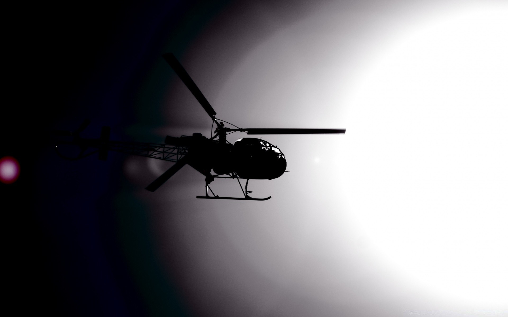 Silhouette eines Hubschraubers unter der weißen Sonne