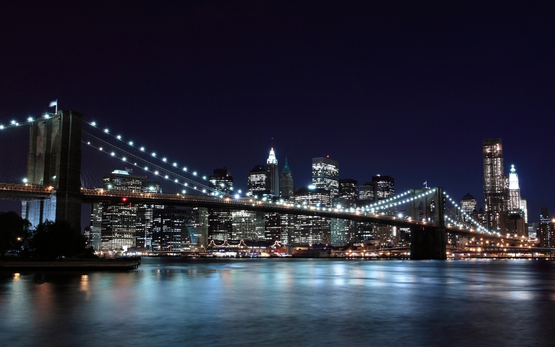 Eine erstaunliche Nachtstadt hinter der Brücke
