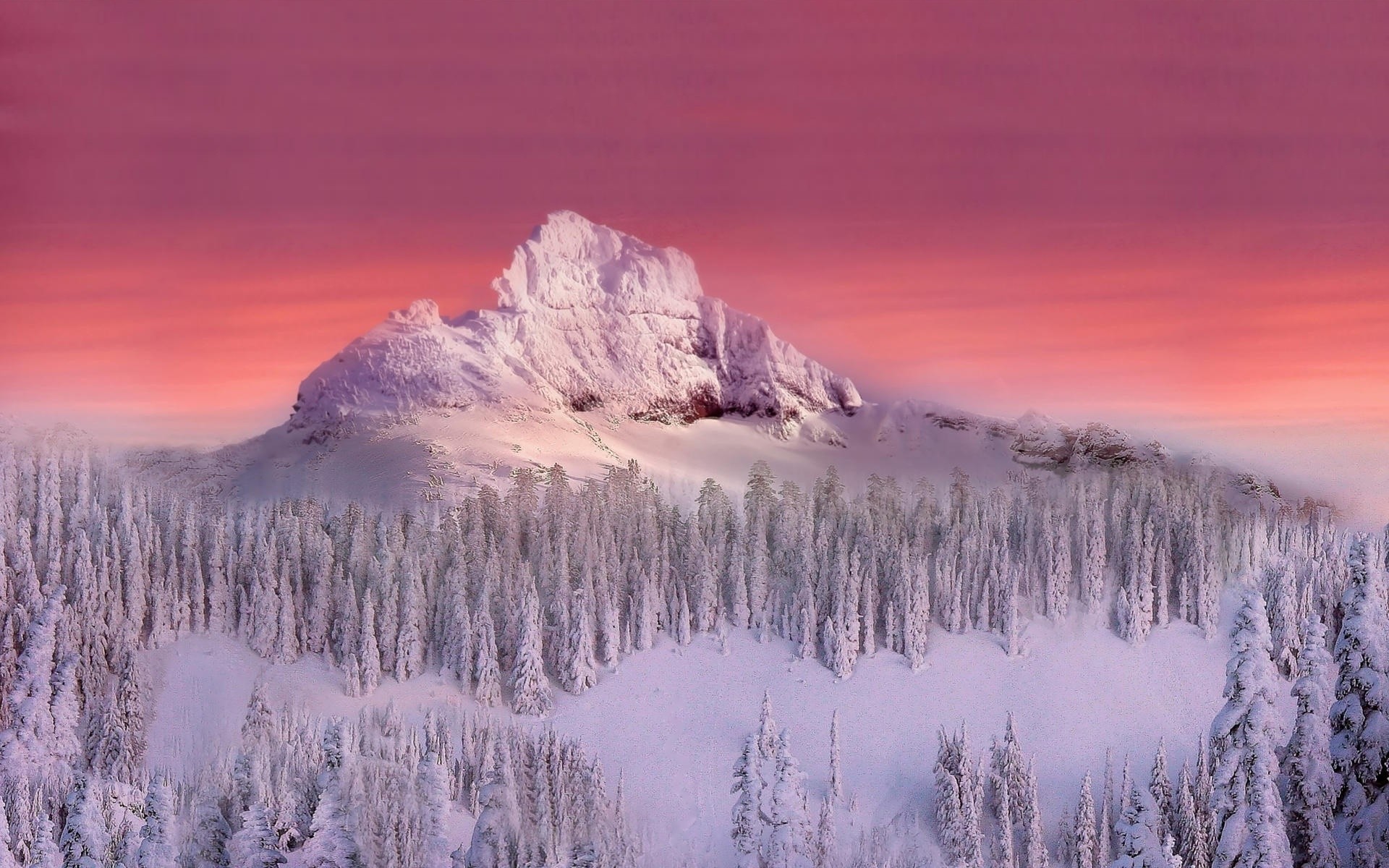 Wald und See vor dem Hintergrund der Berge und des Abendhimmels