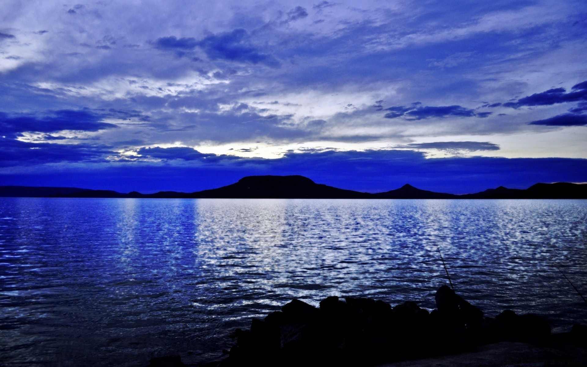 Ein Mann am Wasser schaut auf den Sonnenuntergang