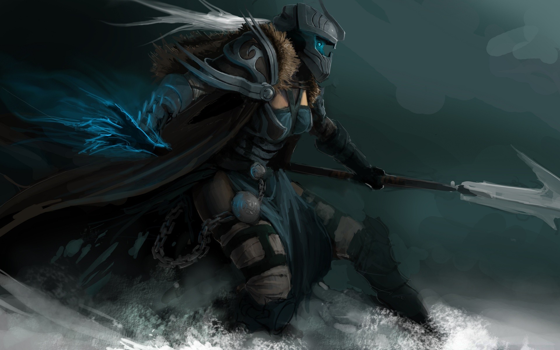 Ein kriegsschiff, das durch die fantasy-stadt fährtEin Kriegsschiff, das durch die Fantasy-Stadt fährt