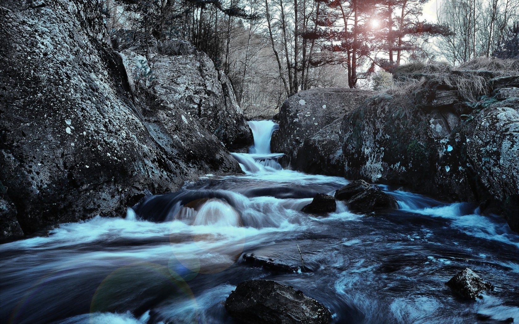 Ein außergewöhnlicher Wasserfall im Hintergrund der Morgendämmerung
