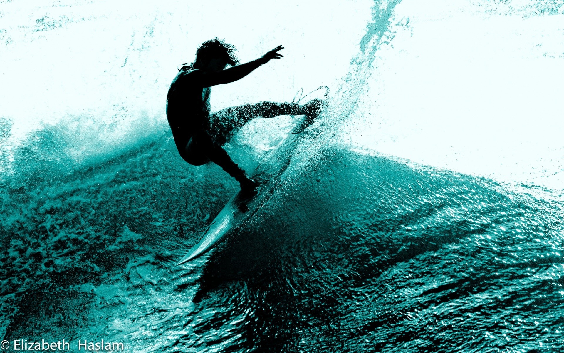 Surfer werden die Welle schön überwinden